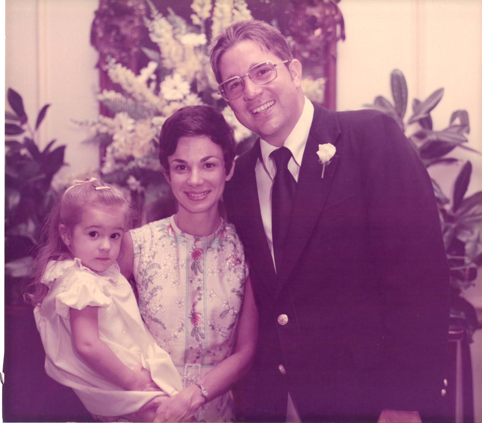Me at age two with my parents at my aunt’s wedding: